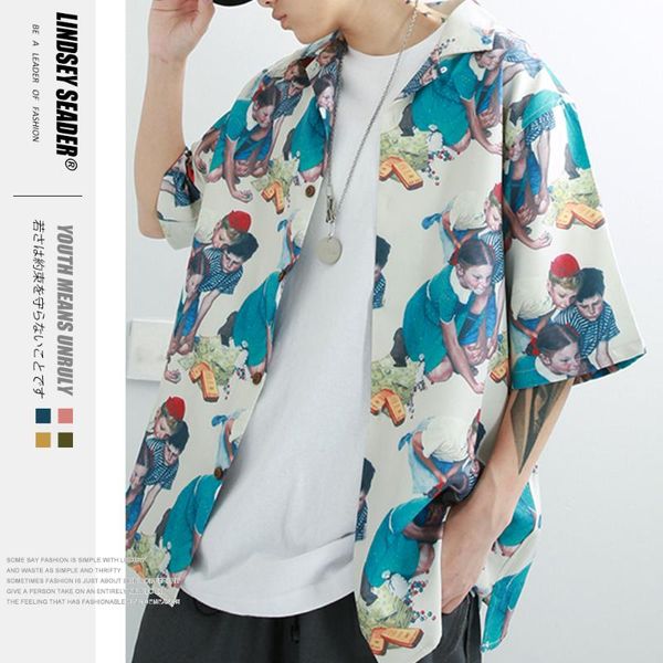 lindsey seader 2020 гавайская рубашка streetwear мужчины hip hop рубашки дети печать harajuku бич рубашка summer casual tops, White;black