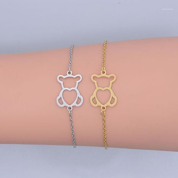 link, chain 100% stainless steel dainty heart bear charm bracelet for women wholesale factory sale never rust super quality1, Black