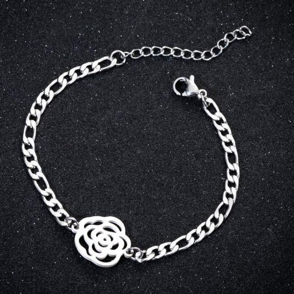 link, chain flower bracelet stainless steel women jelwery for mom gifts, Black