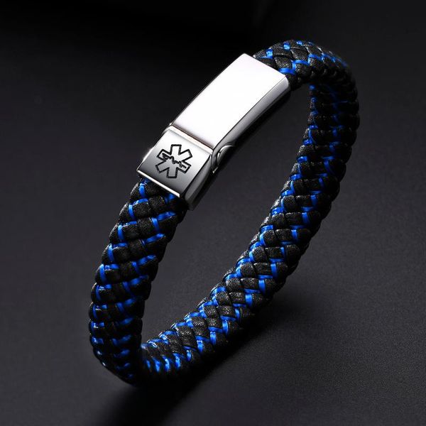 link, chain men bracelet,black blue weave leather bracelet for stainless steel buckle