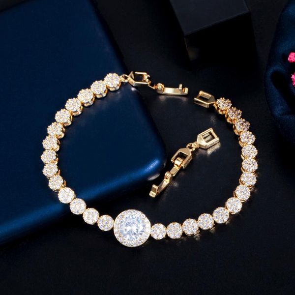 link, chain threegraces sparkling round cubic zirconia luxury women link bracelets bangles gold color wedding engagement jewelry br168, Black