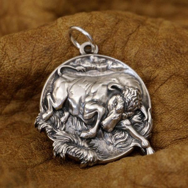 linsion 925 sterling silver embossed bull pendant mens punk pendant ta339