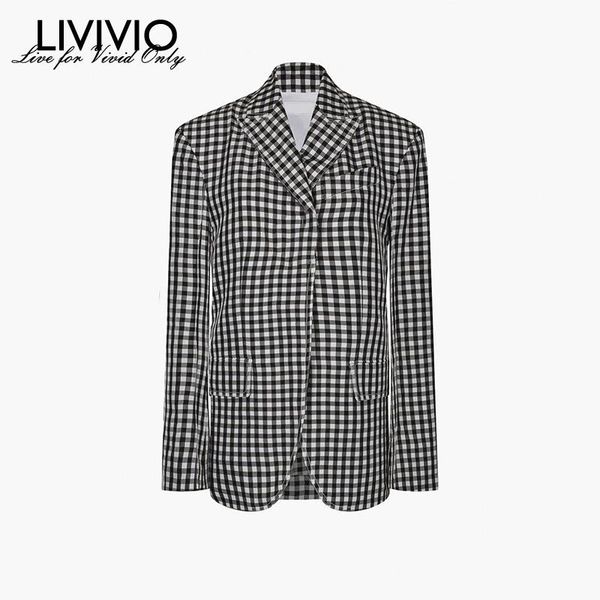 livivio]spring new profile shoulder pad plaid suit jacket, retro fashion small suit, temperament commuter lady suit, White;black