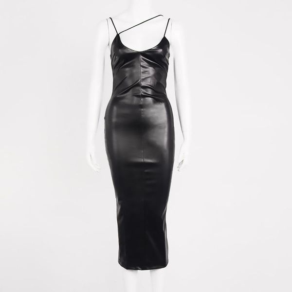 long dress for party pu leather corset split stretch backless strap spagheplus y2k black bustier clubwear e girls outfit casual dresses, Black;gray