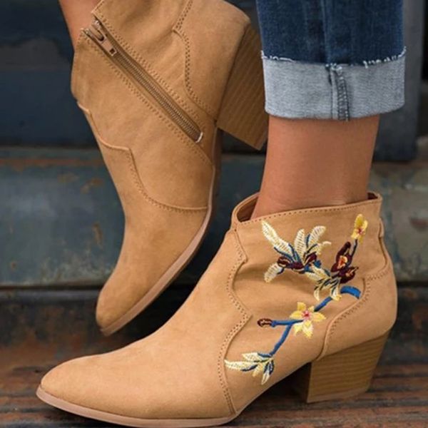 nice women ankle boots ladies pointed boots large size fashion wear booties autunm winter shoes low-heeled shoes, Black