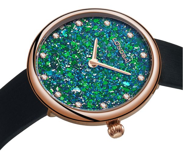 longbai jewelry watch gem small diamond 2021 quartz womens watches fashion 6.7mm ultra thin dial leather strap lady wristwatches, Slivery;brown