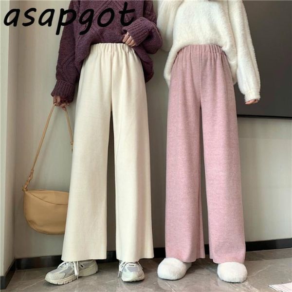 loose high waist autumn winter knitted wide leg pants chic korean wild casual straight pant fashion solid mujer pantalones women's & ca, Black;white