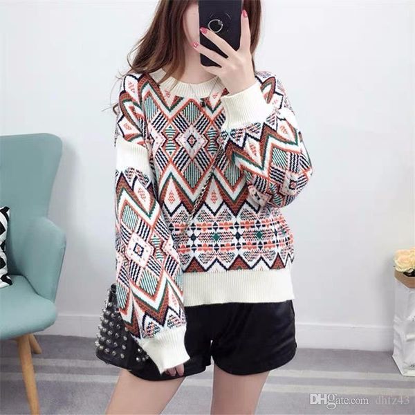 loose plus size knitted sweater women's round neck long sleeve bottoming 2020 short geometric sweater autumn winter female, White;black
