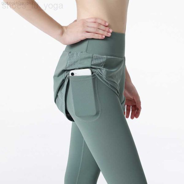 lull women yoga leggings short fake two piece set sweatpants popular breathable anti-shrink gym sports pants training tights legging sportsw