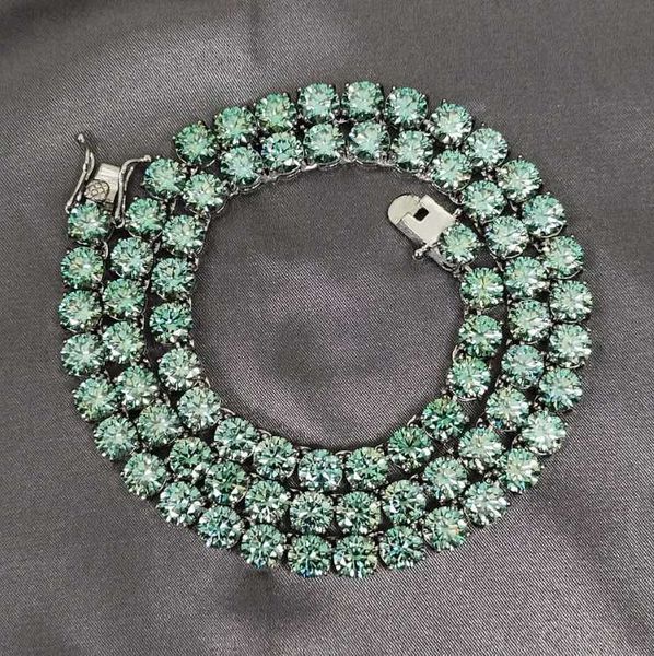 luxury blue vvs moissanite 6.5mm tennis chain iced out choker solid sterling silver hip hop green tennis necklace