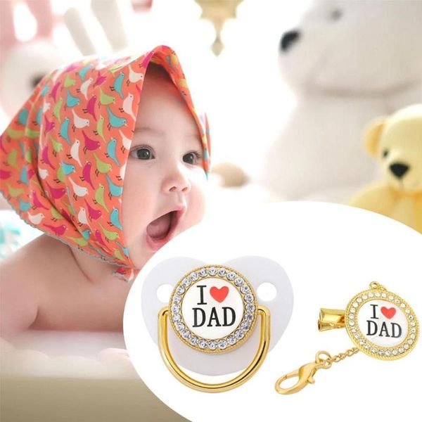 luxury crystals diamond gold baby pacifier dummy chain love soother dad nipple i bling orthodontic kid holder pacifiers#