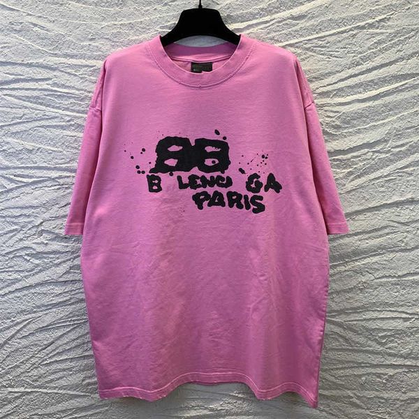 luxury designer's new men's women's short sleeved sportswear set shirt high edition new hpainted graffiti letter print burnis, White;black