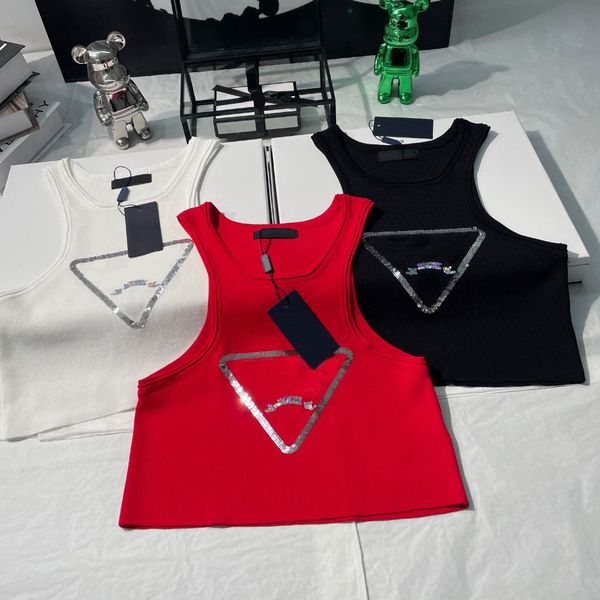 luxury designer 2023 summer women o-neck knit tank street wear off shoulder cropped for female casual fashion vest, White