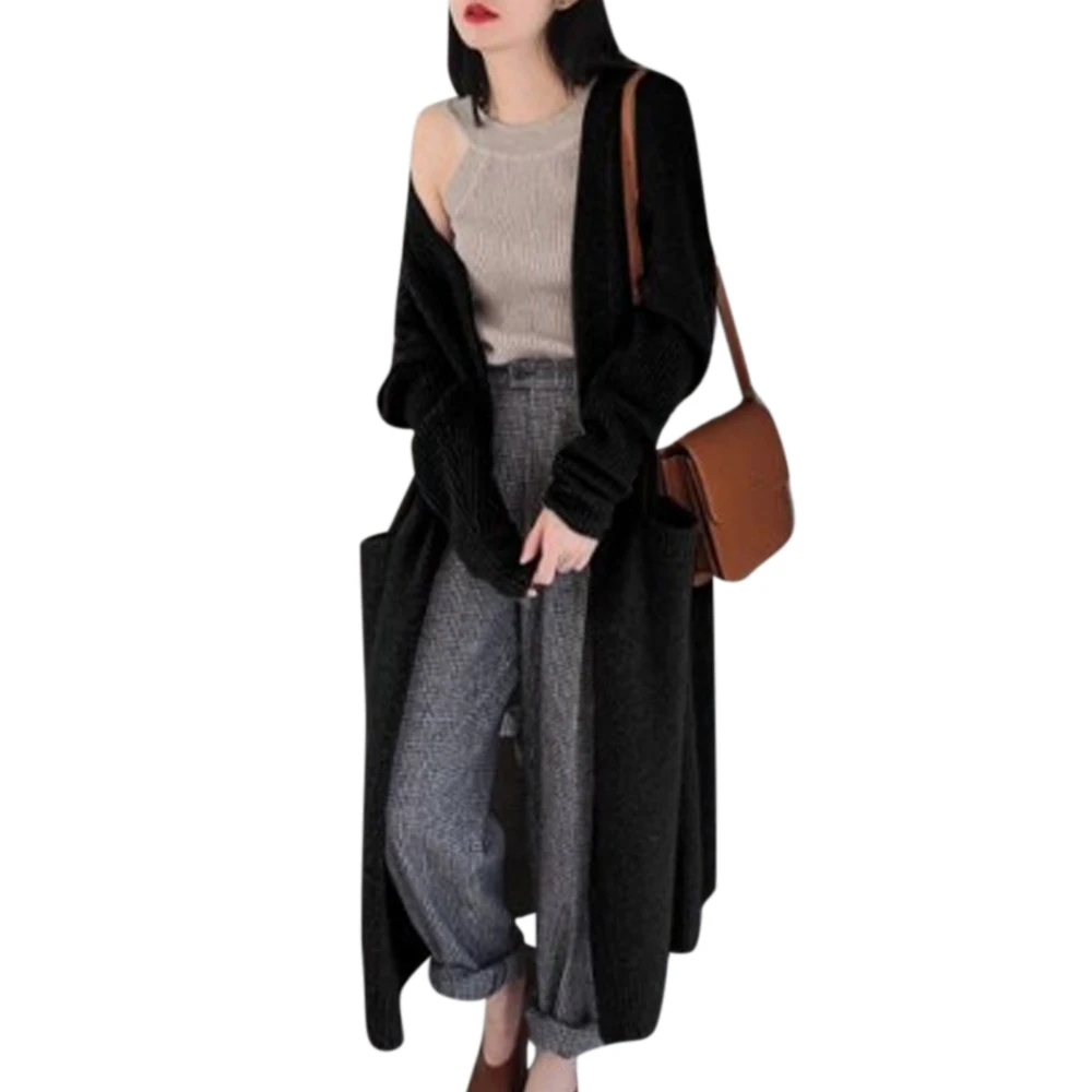 Women Sweater Cardigan Fashion Solid Color Full Sleeve Big Pockets Open Stitch Long Outwear Knitted Loose Casual Ladies Clothing