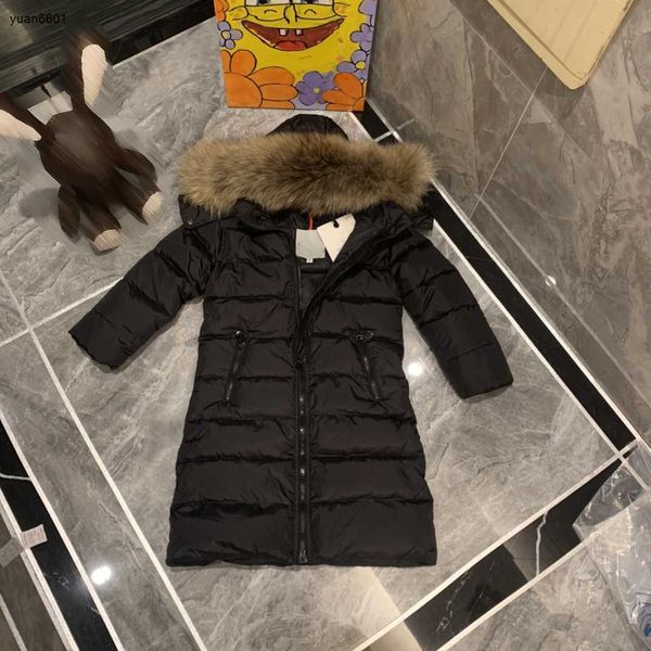 luxury designer kids mid length down jacket fashion zipper pocket baby winter clothing size 0-12 cm 2pcs fur hooded down overcoat aug30, Blue;gray