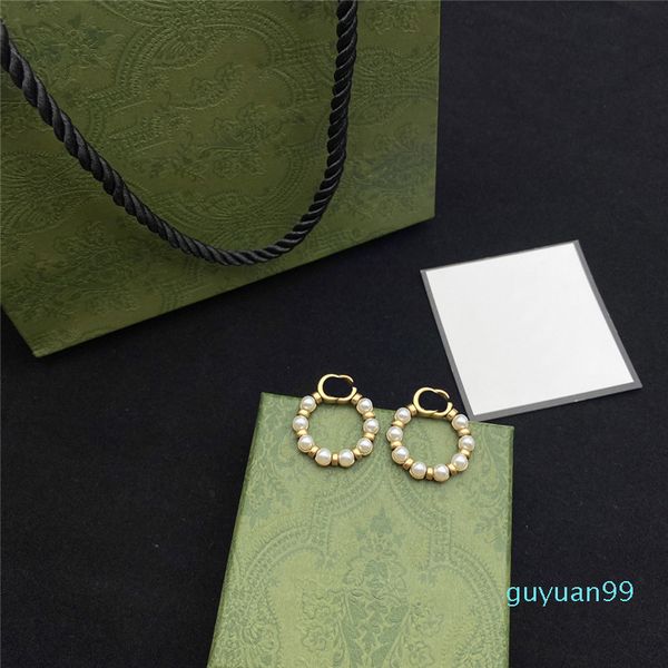 luxury- designer pearl circle earrings charm women double letter eardrop girl pendant studs for party date gift, Golden