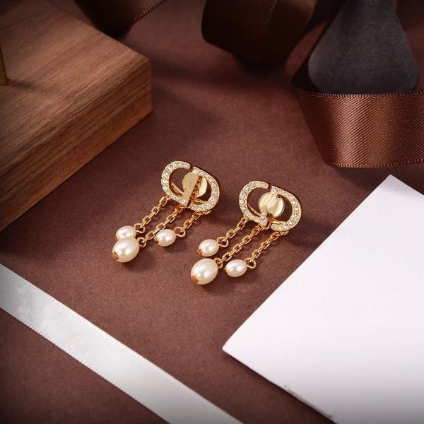 luxury designer women earrings gold charm earrings pearl stud necklace bracelet suits with pearl pendant and thin chain fashio279j, Golden