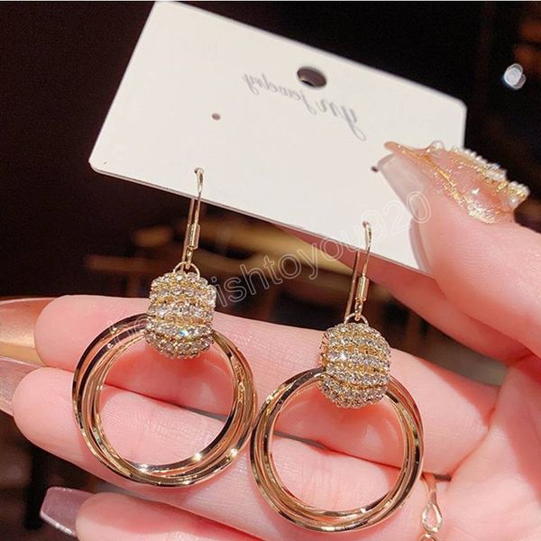 luxury gold multi-layer circle flash diamond earrings for women jewelry personalized fashion dangle earrings, Silver