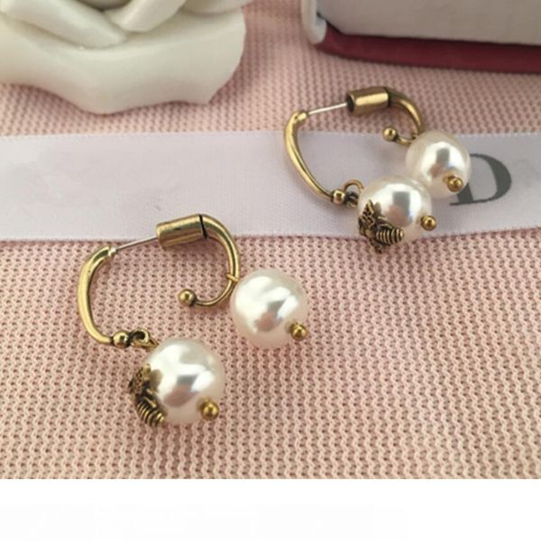 luxury jewelry s925 sterling silver fashion needle pearl irregularity stud earrings classic metal for women hot, Golden;silver