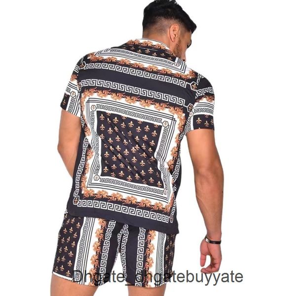 luxury men's casual shirts men tracksuits hawaiian sets printing summer short sleeve button shirt fashion beach shorts tees streetwear, White;black
