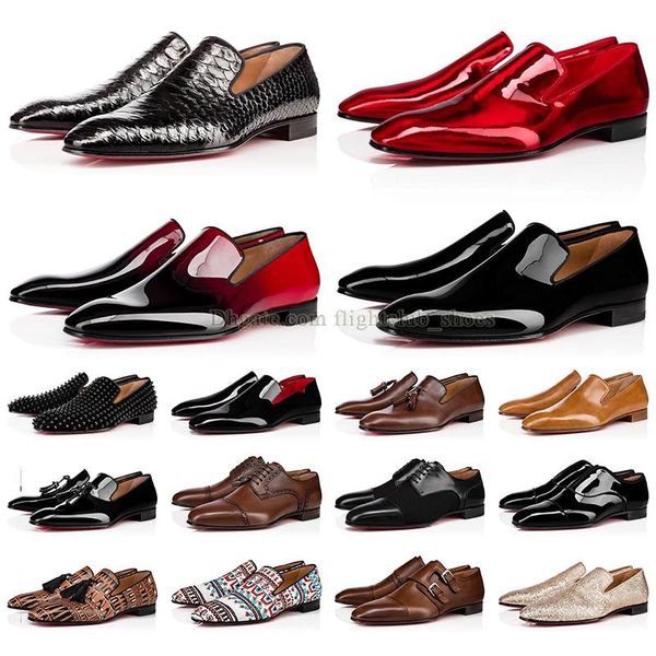 luxury red bottom casual shoes platform bottoms loafers crocodile spike rivet shoe rivets black red patent men leather louboutin dress weddi