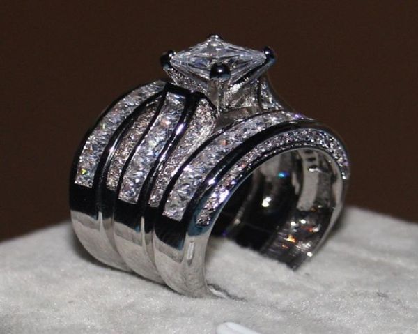 luxury square imitation diamond engagement rings set alloy plated platinum ring wedding jewelry for women size 6 7 8 9 105697083, Silver