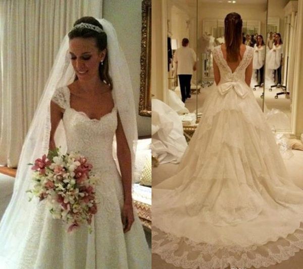 luxury wedding dresses a line cap sleeve appliqued with big bow country garden formal bride bridal gowns custom made plus size, White