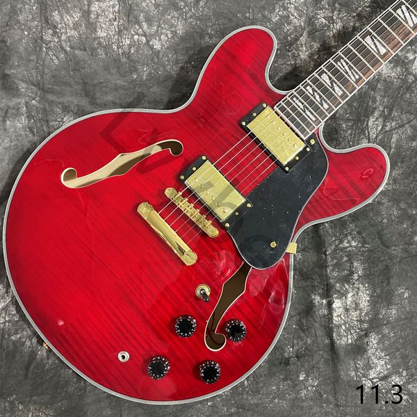lvyelectric guitar rosewood fingerboard hollow body red flame and back gold parts black pickguard
