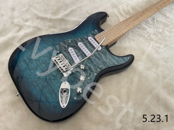 lvyelectric guitar see thru wave flame and back dark blue burst sss pickup pickgaurd flame grain neck