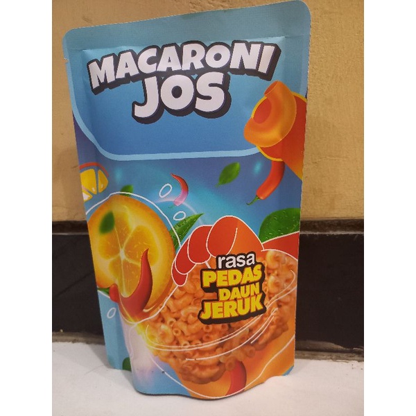 macaroni dengan rasa pedas daun jeruk.cemilan yg lgi viral dan kekinian.dengn netto 100 grm.makan satu bungkus bikin kenyang perut.