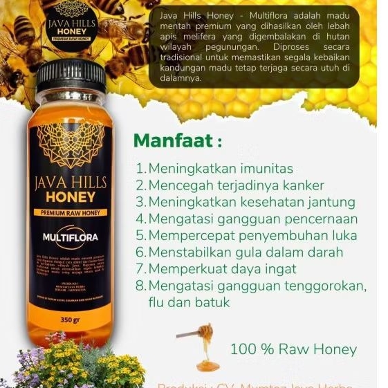 madu multiflora adalah madu mentah premium yang dihasilkan oleh lebah Apis melifera yang di gembalakan di hutan wilayah Diproses secara tradisional untuk memastikan segala kebaikan kandungan madu tetap terjaga secara utuh di dalam nya.