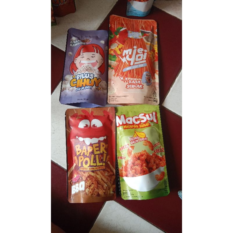 berbagai farian snack makanan ringan dan berbagai rasa.