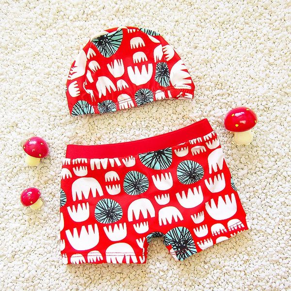 male swim cap trunks baby swimming trunks swimsuit children's students spring infant split boxer suit with swimming cap, Black