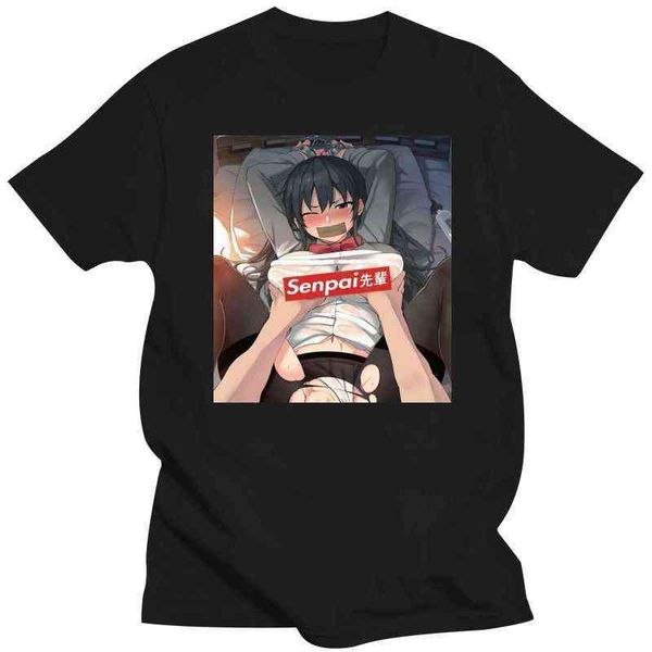 man clothing hentai senpai funny anime and manga size m-3xl us 100% cotton trend t-shirt brand teeshirt y220208, White;black