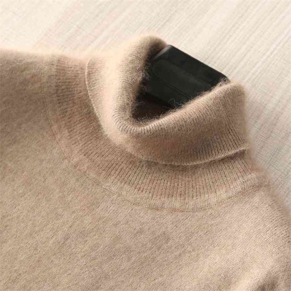 man jumpers 100% mink cashmere knitted sweaters soft turtleneck winter thick warm jumpers 8colors men sweater 210820, White;black