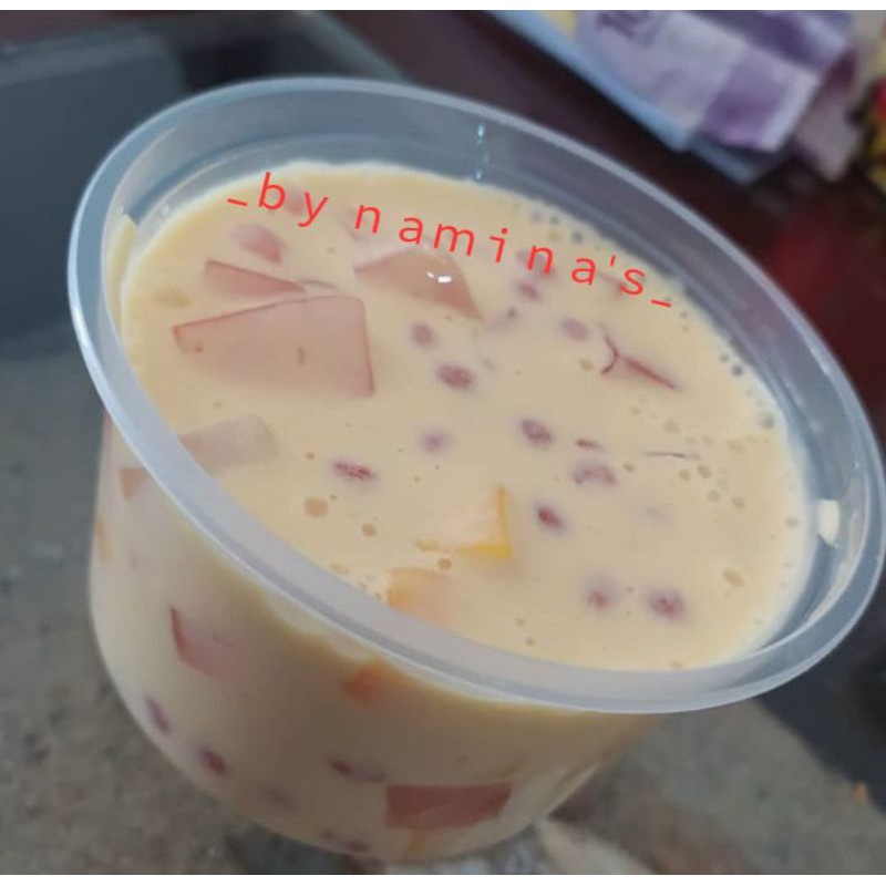 campuran jus mangga, jelly, sagu mutiara dan susu