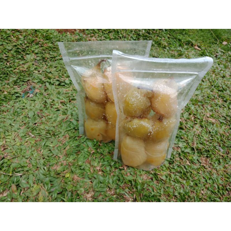 makanan khas daerah Wanayasa terbuat dari buah Pala dan Gula alami dikemas dengan kemasan zipplock tidak mudah bocor..