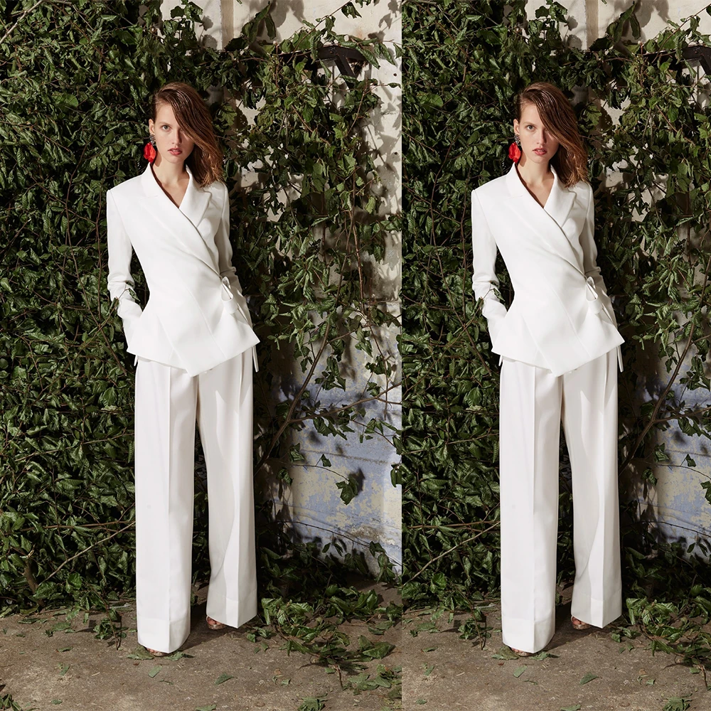 Белые Свадебные смокинги для невесты, зимние женские облегающие брючные костюмы, наряд для выпускного вечера, вечерняя Гостевая одежда из двух предметов на заказ