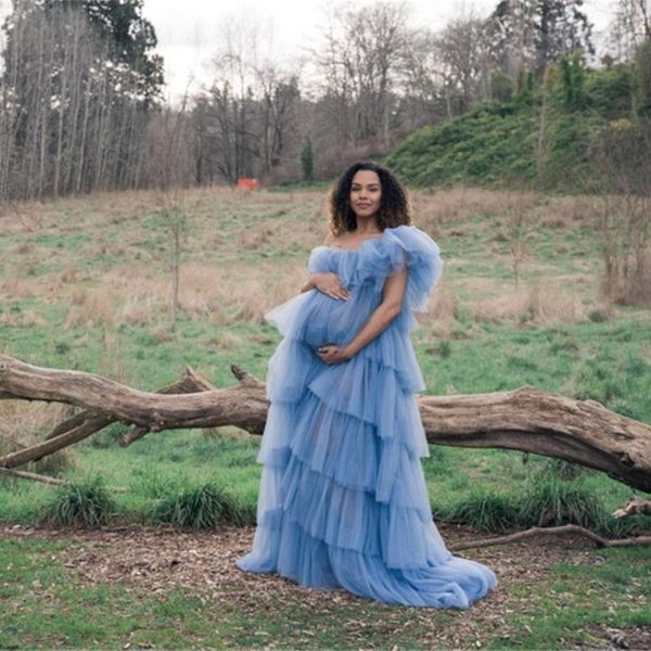 maternity women evening dresses blue ruffles one shoulder gown for pshoot boudoir lingerie robes bathrobe nightwear babydoll, Black;red