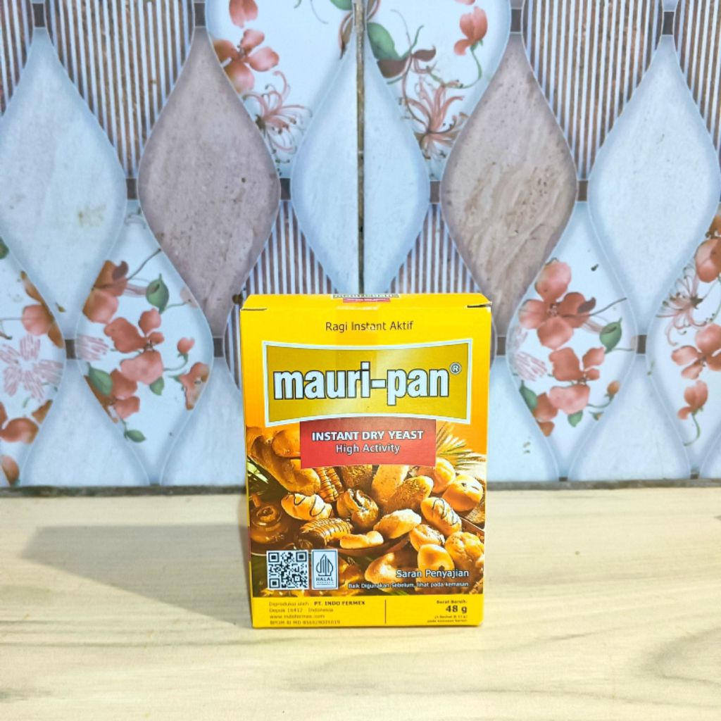 ragi instan yang umum digunakan dalam pembuatan berbagai macam adonan seperti roti, donat, bakpau, dan martabak. Ragi ini berbentuk butiran halus berwarna krem dan memiliki tekstur yang kering. Mauripan mudah digunakan karena dapat langsung dicampurkan ke dalam adonan kering tanpa perlu dilarutkan dalam air terlebih dahulu. Ragi ini terkenal karena kemampuannya dalam mengembangkan adonan dengan baik, menghasilkan tekstur yang empuk dan mengembang sempurna.