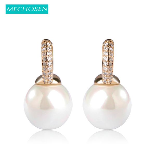 mechosen brand cubic zircon copper earrings simulated pearl brincos pusety wedding banquet engagement women ear cuff accessories, Golden;silver