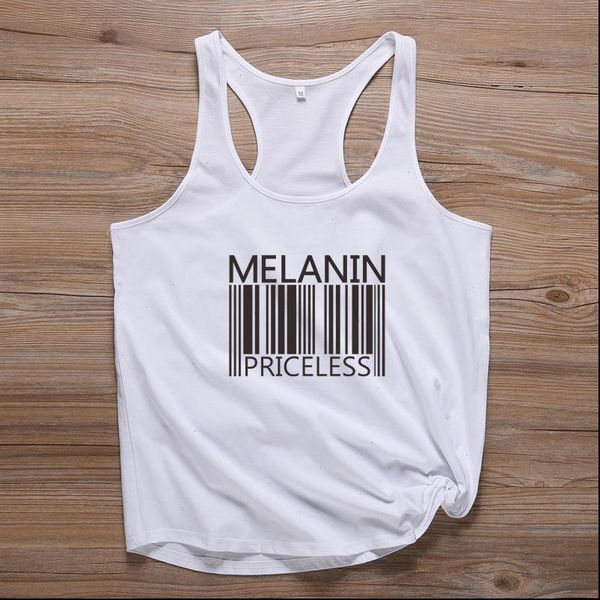 melanin priceless slogan funny women tanks barcode graphic sleeveless t shirt female casual tees drop, White