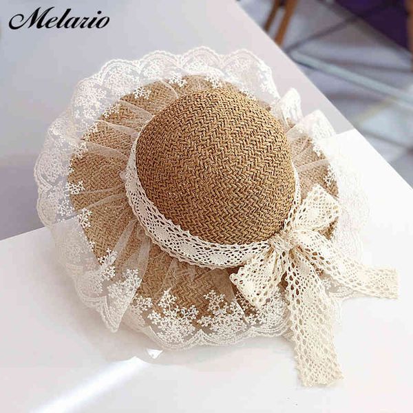 melario girl hats summer fashion lace flowers caps for baby girl kids hats breathable straw hat lovely sunhat baby bonnet 210412, Yellow