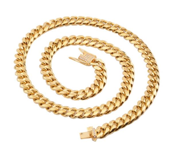 men's 18k gold plated chains cuba chain micro inlaid white diamond buckle encryption necklace 12mm, Silver