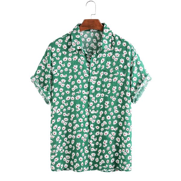 men's casual shirts 2021 fashion daisy floral print short sleeve shirt hawaiian beach cotton linen cardigan, White;black