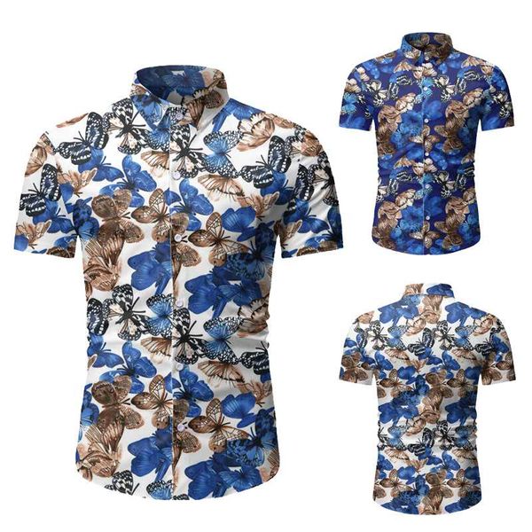 men's casual shirts 2021 fashion hawaiian shirt men floral print short sleeve mens button regular slim fit blouse summer, White;black