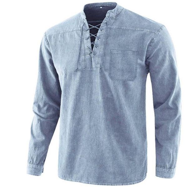 men's casual shirts 2021 long-sleeved blouse medieval eyelet tie-up personality stand-up collar pullover shirt, White;black