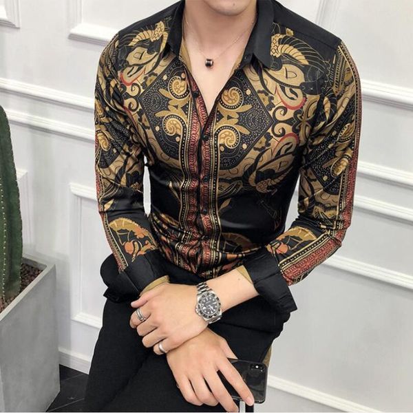 men's casual shirts 2021 men striped shirt fashion baroque floral mens dress slim long sleeve for male tuxedo s-6xl, White;black