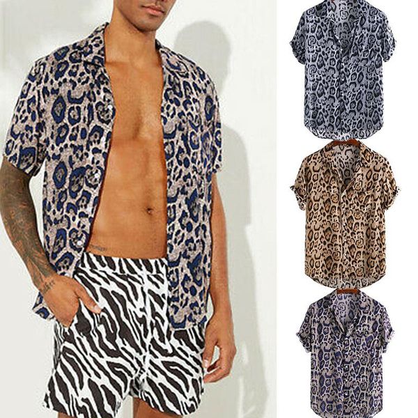 men's casual shirts 2022 fashion men shirt leopard printsingle breasted clothing summer open stitch thin male, White;black
