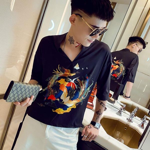 men's casual shirts chinese style men short sleeve v-neck loose streetwear social shirt night club party tuxedo male clothing1, White;black